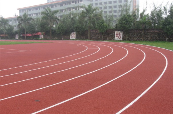 預制式塑膠跑道:是一種預制型卷材跑道。以天然橡膠及人工橡膠為基礎,混合礦物質填充劑、穩定劑及色料于工廠內連續壓延處理,并以近300℃的高溫加硫硬化一體成型,機械壓花,紋路一致的雙層結構合成橡膠。(專業的田徑運動場的常用類型,但其價格之高,是一般的大中小學所不能承受的)