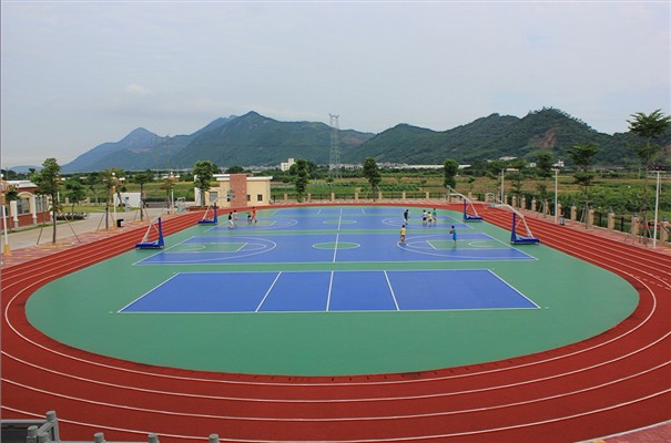混合式塑膠跑道:是PU與黑色橡膠顆粒按一定比例混合而成跑道系統。材料運到現場按一定比例混合,加入催化劑攪拌均勻,攤鋪,常溫硫化成型,該面層是現時*有國家標準的塑膠面層材料,主要用于專業比賽用場地等。(復合式和混合式二者性能介于全塑型與透氣型之間,價格要略低于全塑型等塑膠跑道,但也比透氣型高了不少,對基礎要求較高)