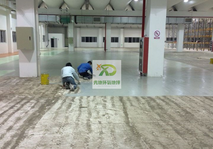 1、在潔凈的地面上,將環(huán)氧樹脂和石英粉按正確的配比攪拌均勻后,采用批刀均勻鏝刮在地面上,以增加中涂與面層之間的結(jié)合,并進(jìn)一步調(diào)整地面的平整度;