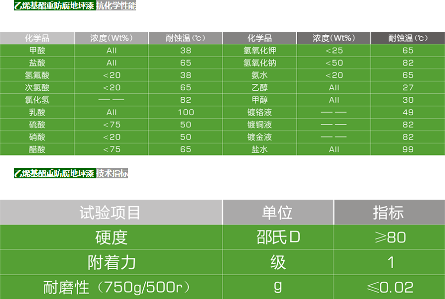 乙烯基酯重防腐地坪具有良好的耐腐蝕性,用在酸堿場地能抵抗大部分的酸、堿、鹽等化學試劑的侵蝕;可在低溫下固化,施工厚度可根據設計要求設定,并通過刮涂乙烯基樹脂膩子配合帖襯玻纖布實現不同厚度,使用年限5年以上,下面秀地公司介紹一下乙烯基酯重防腐地坪與輕防腐環氧地坪。