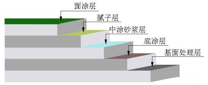 6、環氧樹脂面涂涂裝:打磨中涂層,在確保基面被完全封閉的情況下,按設計要求施工環氧樹脂平涂面涂2道,施工時將面涂材料攪拌均勻后滾涂施工;涂裝施工的環境要求:施工基面應保持干凈、干燥,無其他工程施工交叉作業,室內空氣相對濕度宜小于85%,當濕度過大時應停止施工;